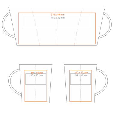 Print on the handle (90x10 mm) Print on the inside (50x20 mm) Print on the bottom outside (ø35 mm) Gold print Silver print Over the rim imprint Personal print |