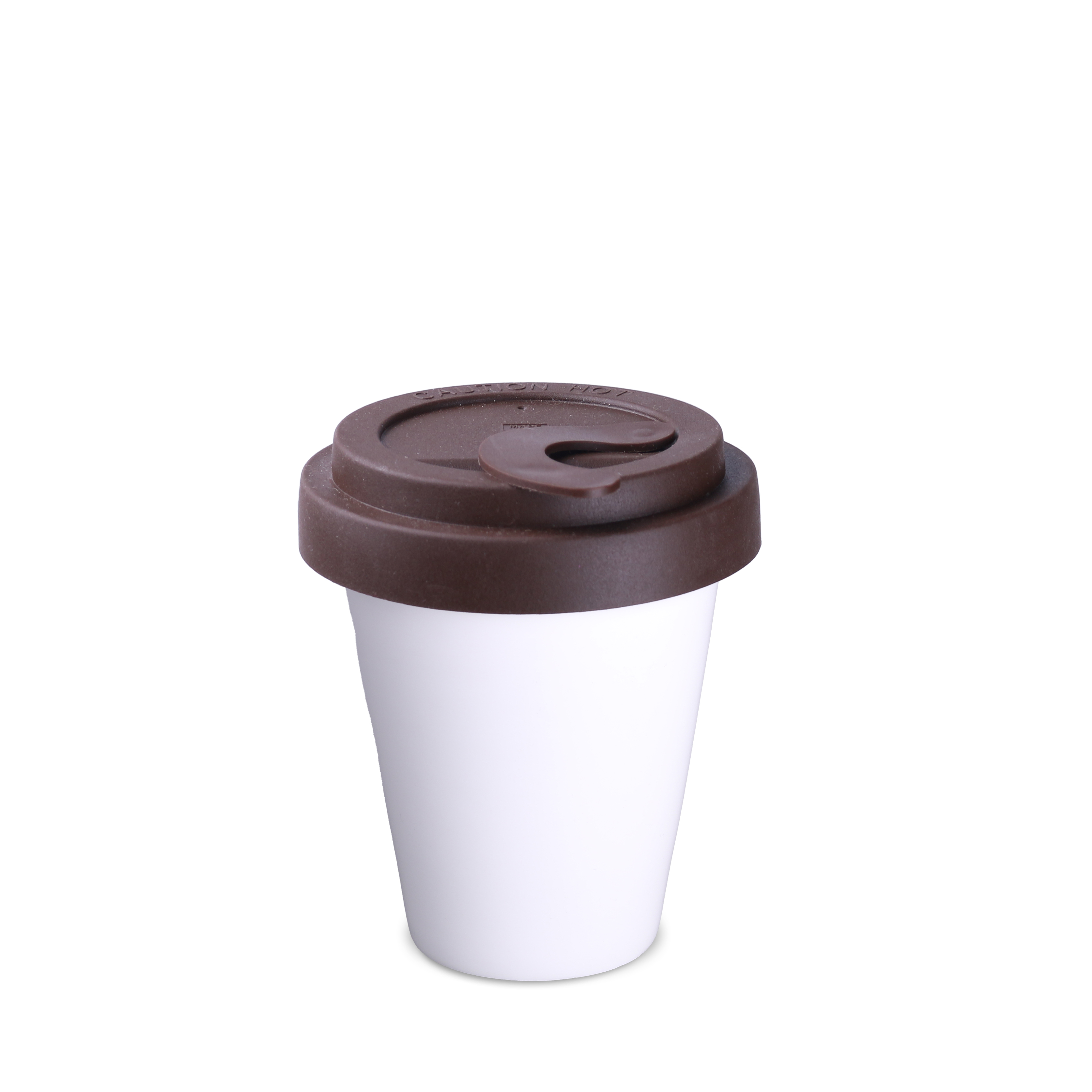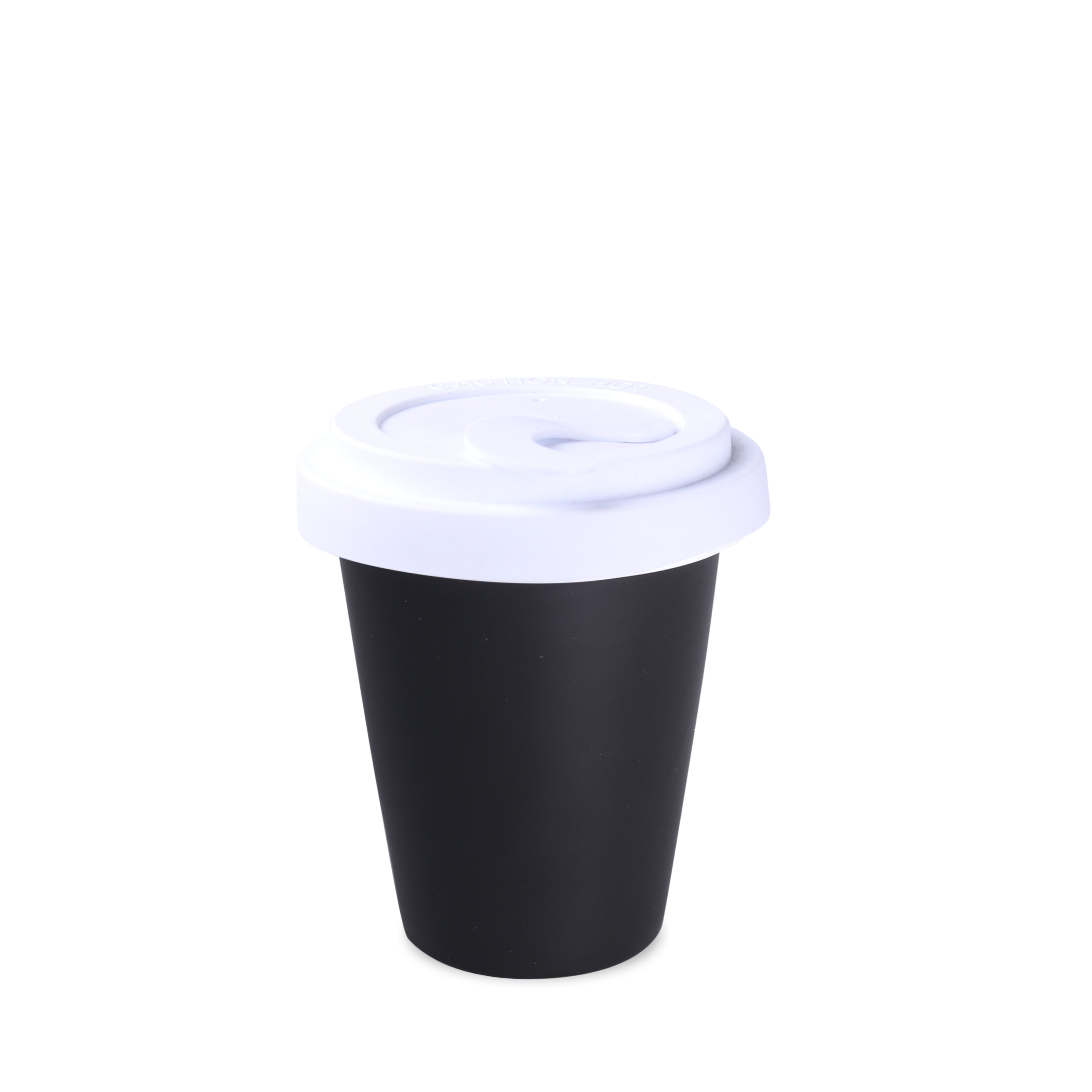 A practical porcelain mug with a polymer lid and a stopper to prevent accidental spillage. Thanks to its rare double-walled porcelain structure, this mug offers enhanced thermal insulation. The mug body is available in white and satin black. The lid is available in the following colors: white, orange 021C, Cool Gray 7, navy blue 294C, brown 4695C, black, pink 4064C, blue 2144C, eucalyptus 5493C, desert sand 2310C.